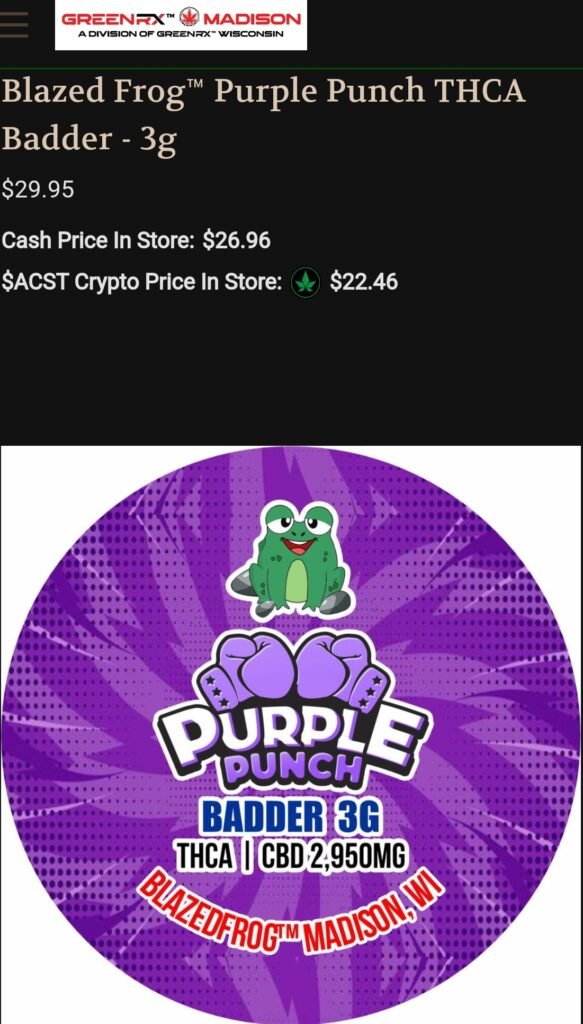 The Blazed Frog™ Purple Punch THCA Badder is a Hybrid Strain with grape and plum notes and a hint of berry goodness, giving it a unique flavor profile. Price listed is per 3G Container.